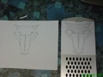 Na ručné rezanie sa najviac hodia čiary. Na upravenie obrázku/motívu používam program GIMP. Nástroj "Fuzzy Select Tool" vytvorý výber (selection), ktorý sa dá funkciou "Selection to Path" prerobit na cestu (Path). Funkcia "Stroke Path" cestu obkreslí a máme hotové čiary na rezanie. Alternatívou je nástroj "Paths Tool" ktorý je presnejší. Ale obkreslenie trvá dlhšie, pretože ide o ručné tahanie čiar. Pripravený obrázok vytlačíme na laserovej alebo atramentovej tlačiarni a nalepíme ho na plech. Perfektne poslúži nalepovací A4 papier. Je to vlastne to isté ako papier so samolepiacimi štítkami. Len miesto rozdelenia papiera na x štítkov je v celosti A4. Dá sa kupiť v papiernictvach. Tento papier je vhodný aj do tlačiarní, takže vytlačíme a nalepíme. Nalepený papier s motívom plní aj funkciu ochrany plechu pred poškriabaním. Je dobré vizuálne oddeliť časti plechu ktoré budú vyrezané. Napríklad ceruzkou zmatnit tie plochy kde bude diera: