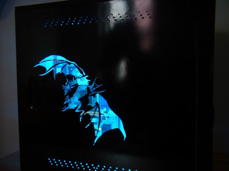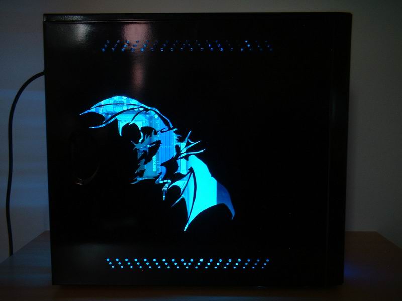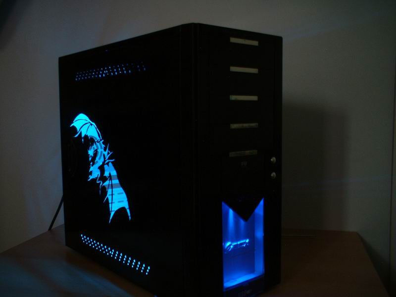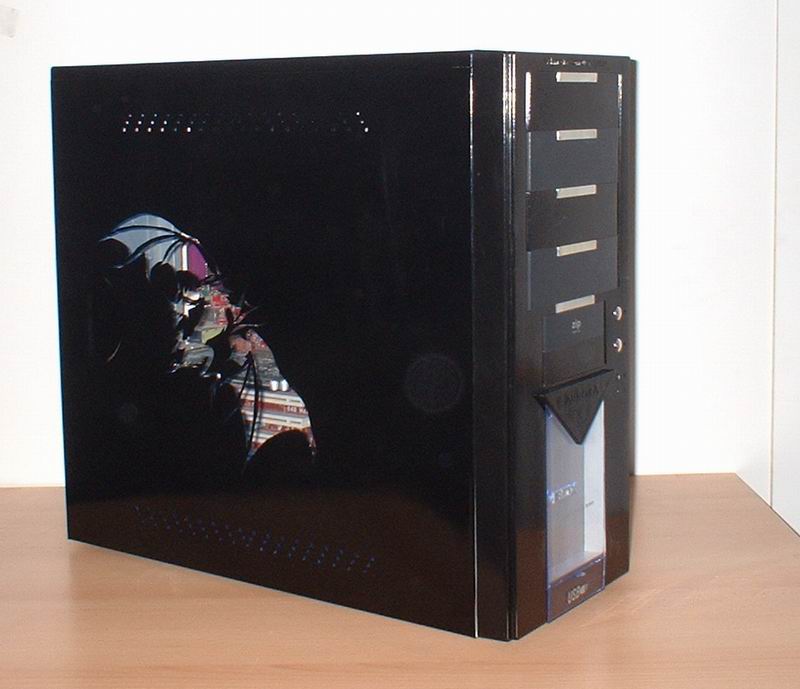 Tak a bolo na čase urobiť niečo pekné. A čo tak Draka? Tak som začal hľadať na webe nejaké námety a stále som sa nevedel prepracovať k niečomu poriadnemu. Až som na jednej BYOC Arene (lanparty) narazil na tento motív. A potom prišlo to, na čo sa každý moder teší najviac a to moding samotný. Naštartoval som ručnú lupienkovú pílku s rovnými plátkami a hor sa do práce. Po niekoľkých hodinách [do 24] prerušovanej práce a po niekoľkých nadávkach [definitívne nad 24] bolo dielo dokonané. Dalo to dosť piplavej práce ale výsledok za to stojí, no nie? (Predný panel je originál, upravoval som len bočnicu)
