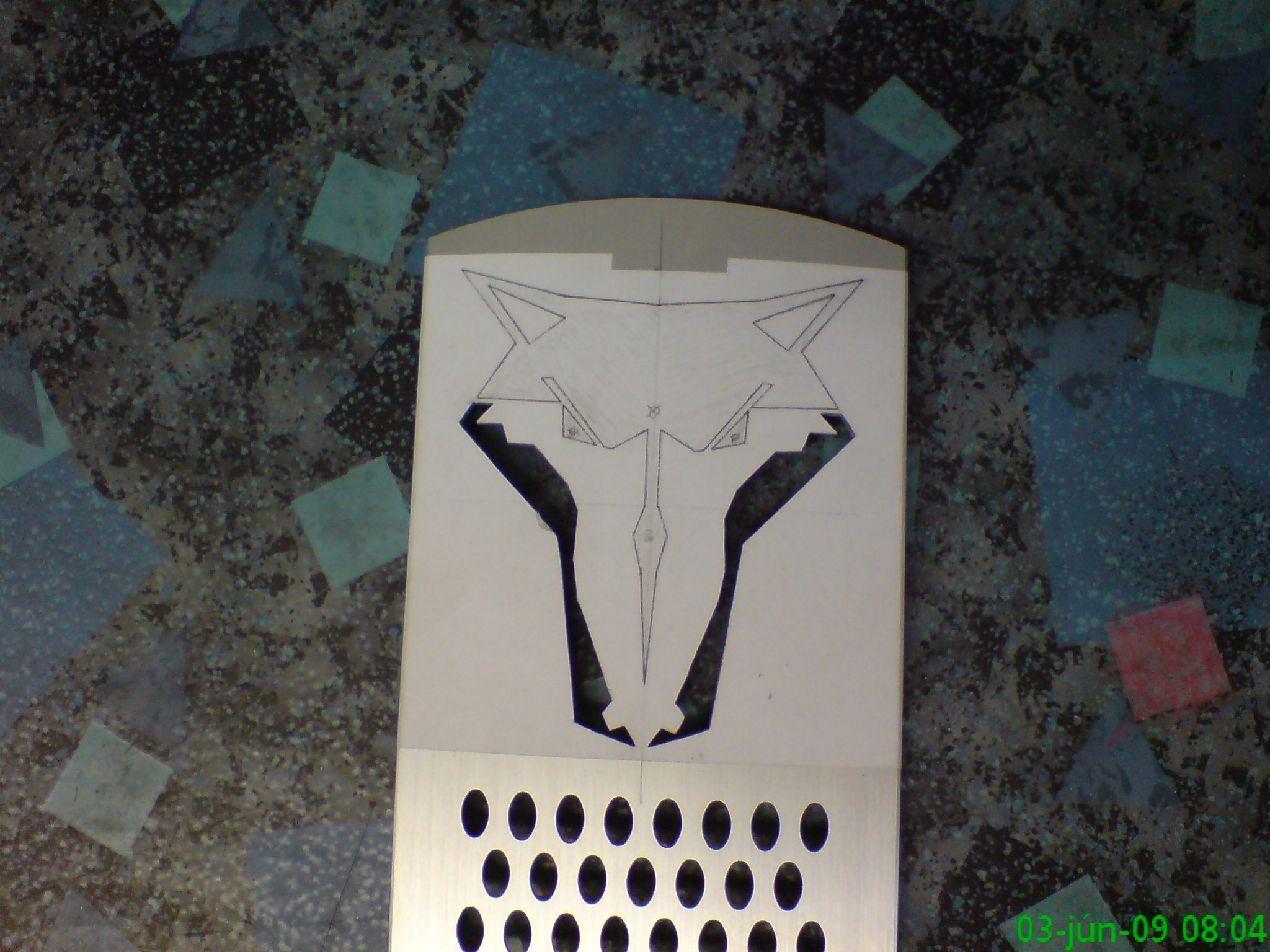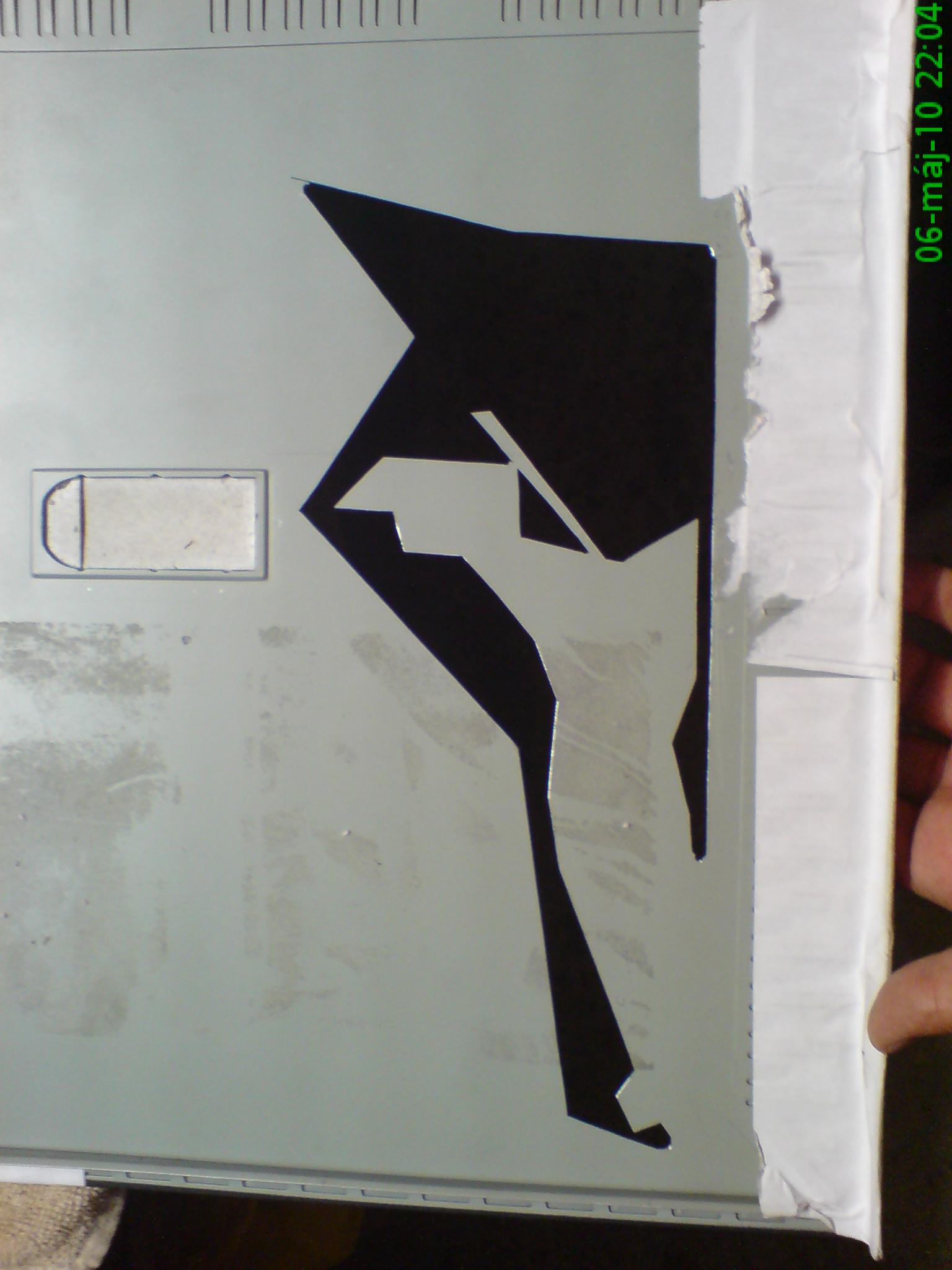 Tento mod robím pre seba. Áno, ešte stále na mode pracujem. Kúpil som si dosku ktorá mi veľmi vyhovovala. Bola to picoBTX doska ktorá nemala žiaden balast ako RS232, LPT, PS2 a pod. Preto som si kupil BTX skrinku. Vyrezanie predného panelu prebehlo bez problémov. Ale ked som vybral dosku zo skrinky, poškodil som ju a už potvora nenabehla. Nakoľko už nemôžem zohnat btx-ovú dosku musim vymeniť aj skrinku. Predný panel mám hotový, tak ho použijem na novej ATX skrinke. Predný panel je z 2 mm hrubého hlinníka. Rezal sa celkom fajn, len ho bolo treba zahladiť pilníkmi. Mod bude hotový v priebehu 2 mesiacov. Zatiaľ pár fotiek.
